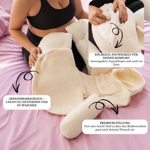 Dieses verstellbare Kissen passt sich perfekt Ihrem Körper an und hilft Ihnen, die ideale Position für einen angenehmen Schlaf zu finden. Von Experten empfohlen, fördert es die optimale Entwicklung Ihres Babys und gibt Ihnen gleichzeitig einen täglichen Energieschub.