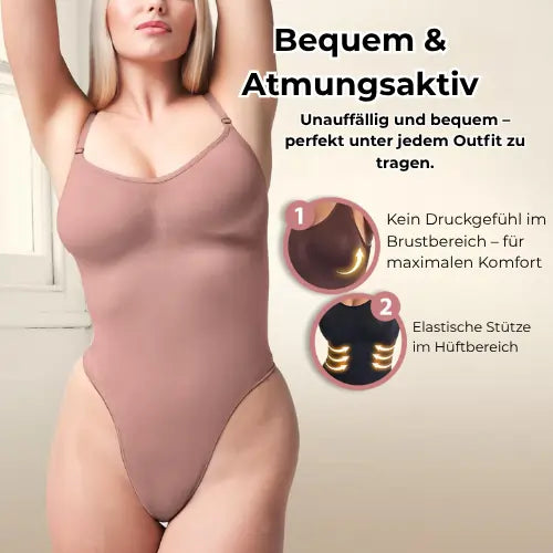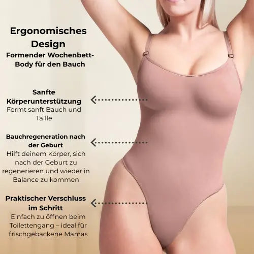 Unsichtbarer Halt, unvergleichlicher Komfort. Unser formender Sculpting-Body wurde speziell entwickelt, um die postpartale Silhouette zu verschönern und bietet eine sanfte Kompression, die die Konturen glättet, ohne einzuengen. Unsichtbar unter der Kleidung begleitet er Sie den ganzen Tag mit einem Haut-ähnlichen Tragegefühl. Ideal nach der Geburt, um Selbstvertrauen und Halt sanft wiederzufinden.